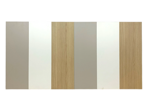 El cabecero está fabricado en melamina y presenta un diseño moderno con diferentes colores. Su estilo versátil añade un toque vibrante y personalizado al dormitorio.