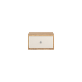 La mesita de noche Pou tiene un diseño minimalista con una superficie amplia y un cajón con tirador discreto para el almacenamiento. Su estilo moderno se adapta a cualquier dormitorio.